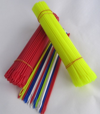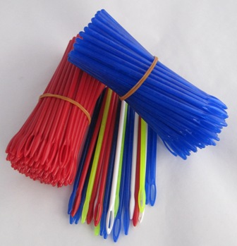 Bu plastik iğneler mont, ceket, eşortman, çocuk kıyafetlerine iplik geçirmek için kullanılır. Renkli ve beyazda fiyat farkı yoktur. 13cm ve 25cm olmak üzere 2 boyu vardır.